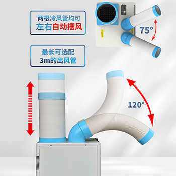 冷風管可在一定范圍內任意彎曲,大角度旋轉。兩根冷風管均可左右自動擺風。