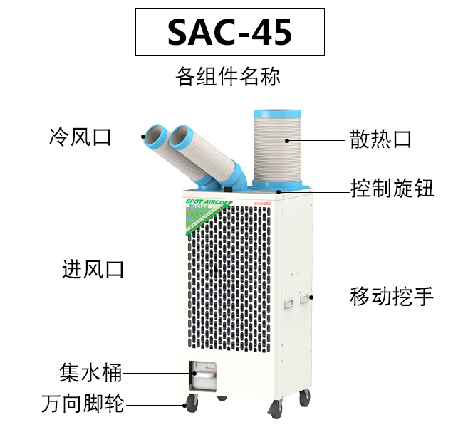 5. 兩個冷風口均可75度自動擺風,適用于2-3個崗位的降溫